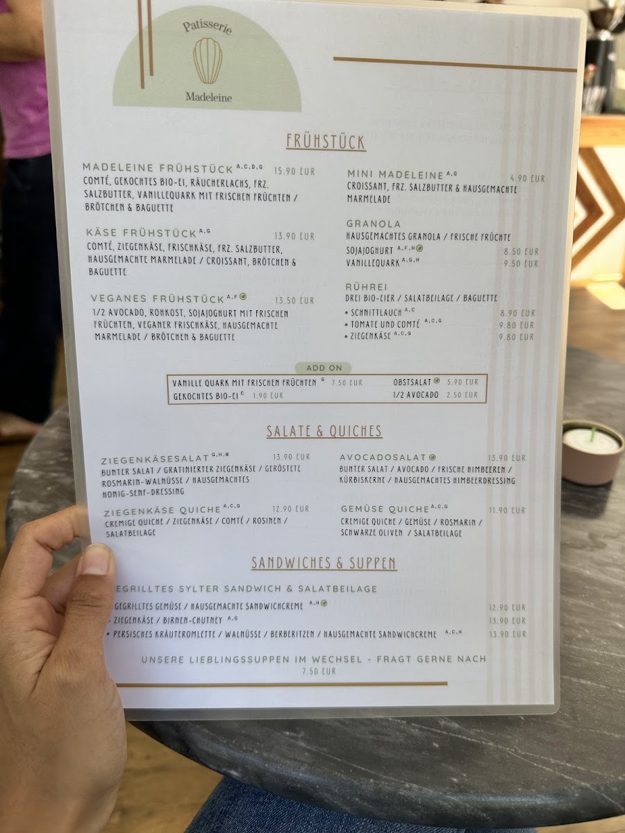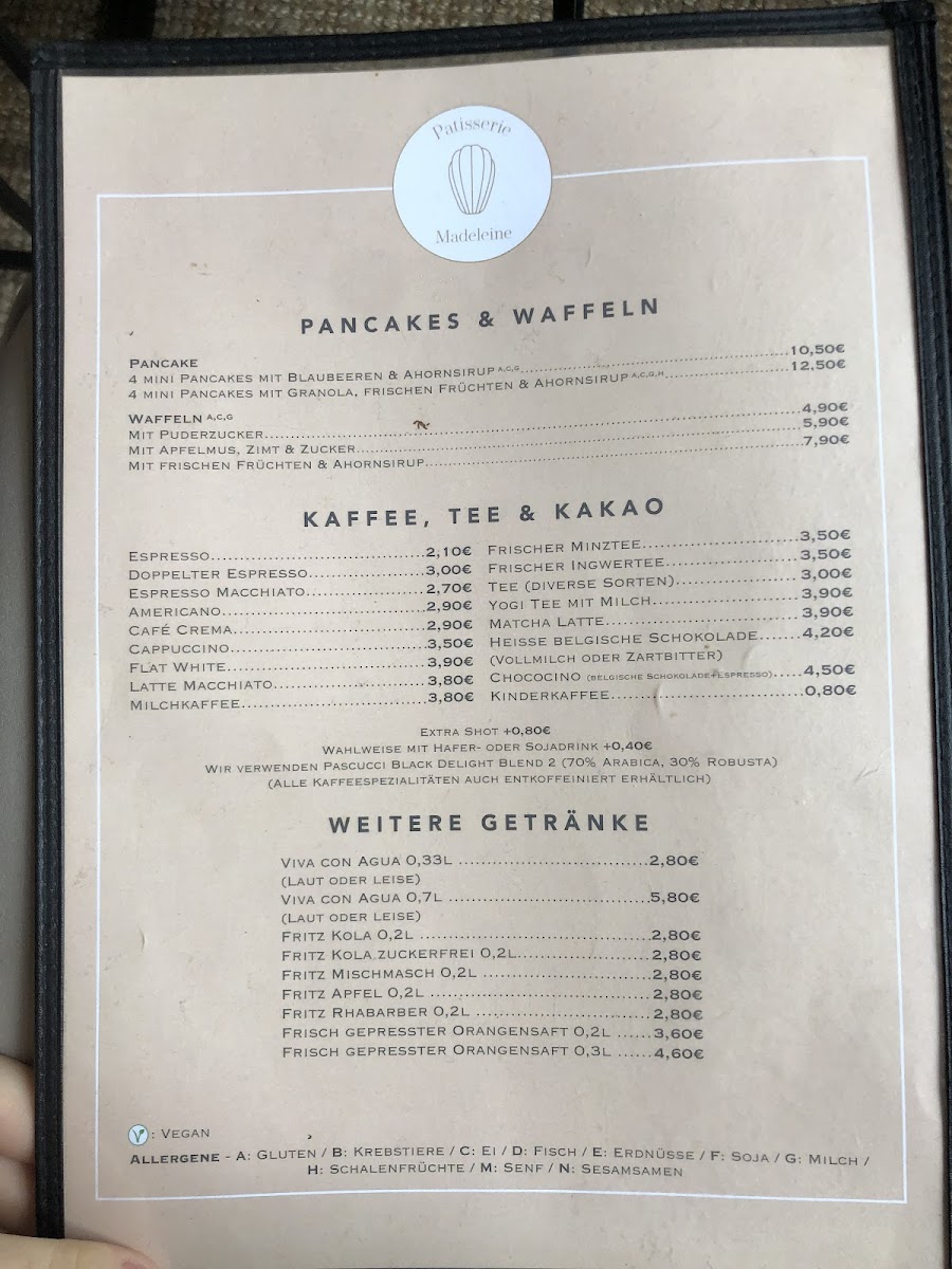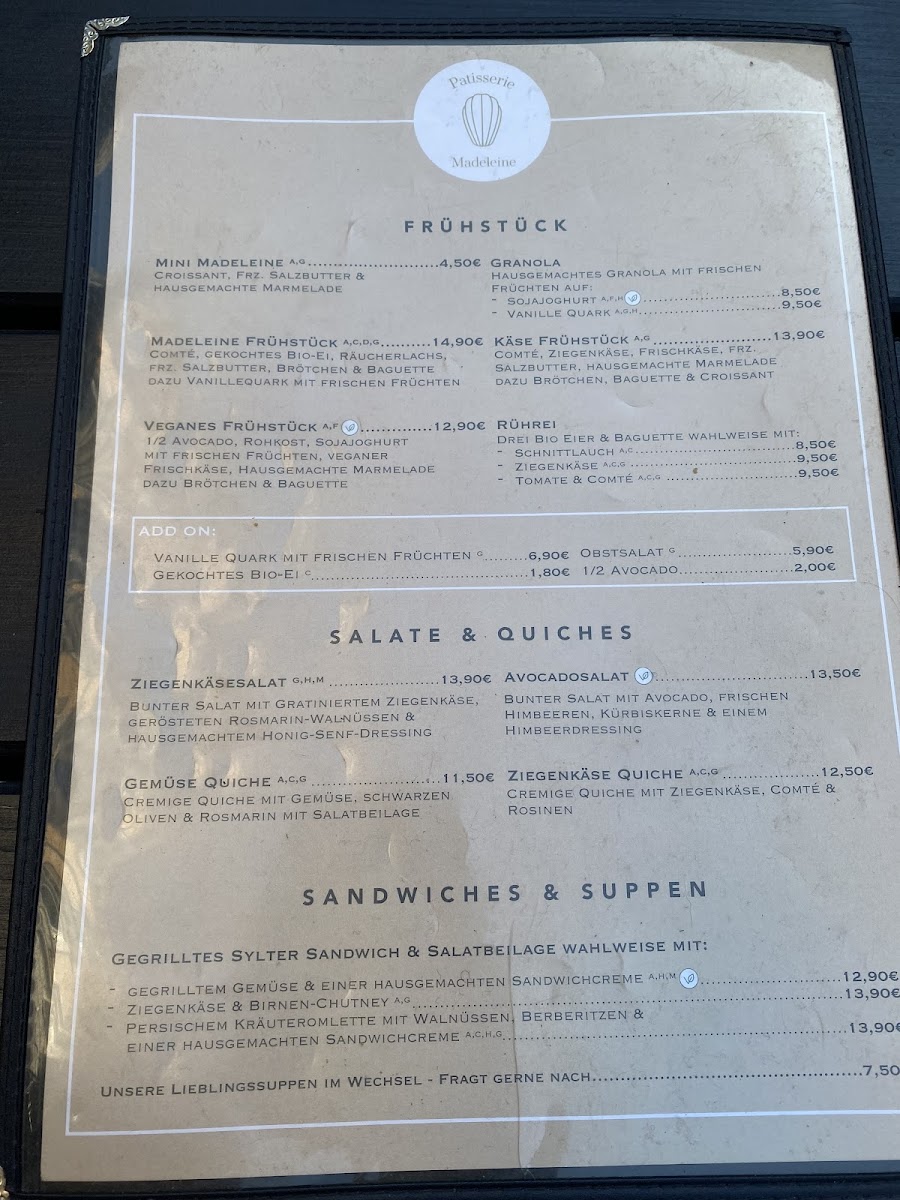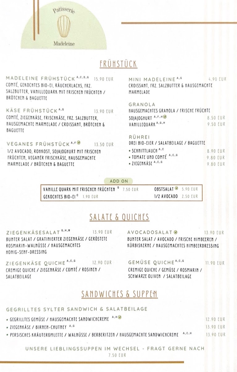Patisserie Madeleine Menu